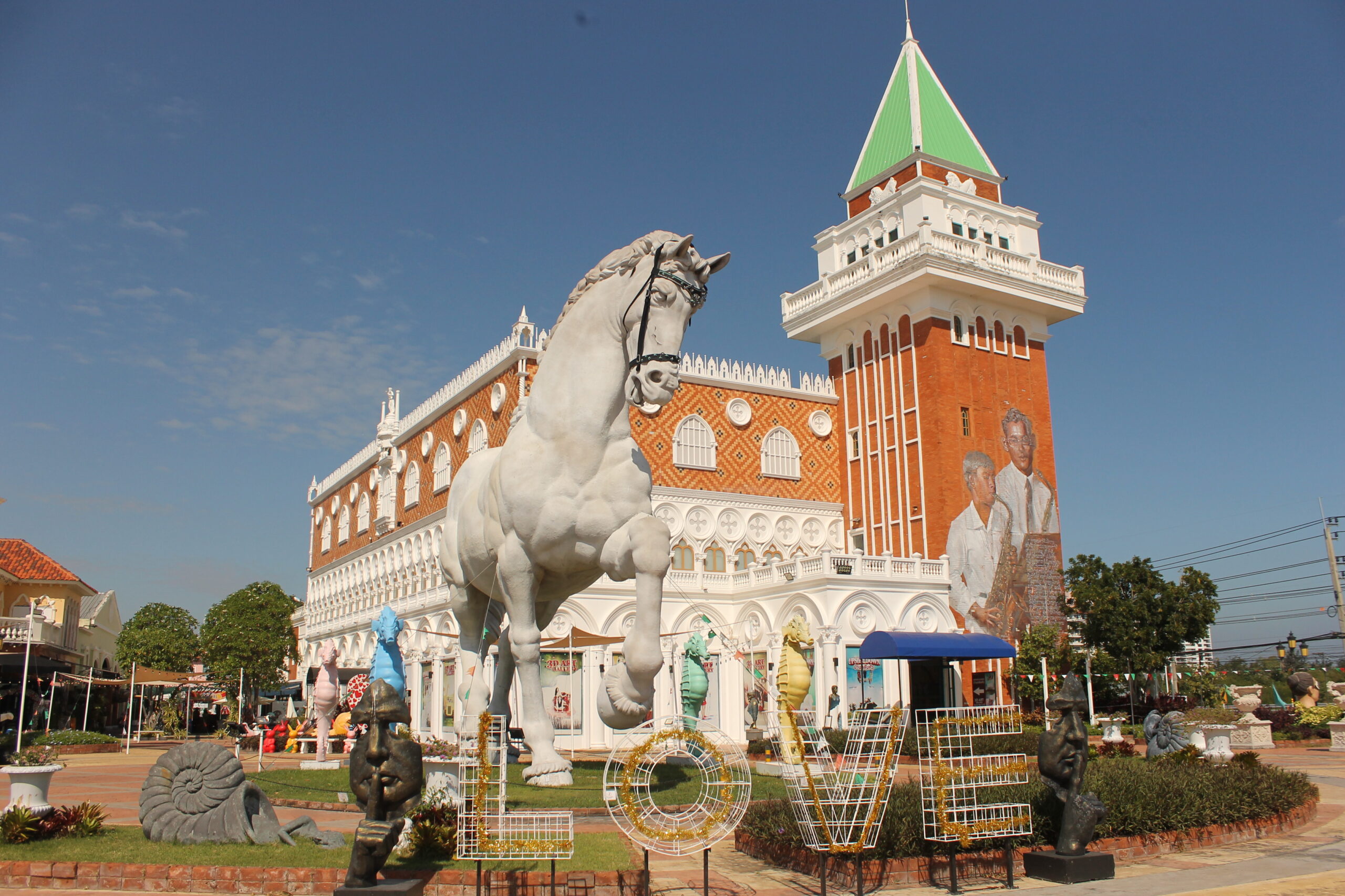Siam Venezia is one of the strangest tourist attractions I have ever been – mainly because it appears to be a complete flop, a ghost town. It allegedly cost USD$35m to build and opened roughly a decade ago. On paper, it sounds impressive: a Venetian themed park, complete with its own campanile, gondola rides, Rialto Bridge, along with many other famous Venetian & Italian themes, including a mini replica of Rome’s Trevi fountain.