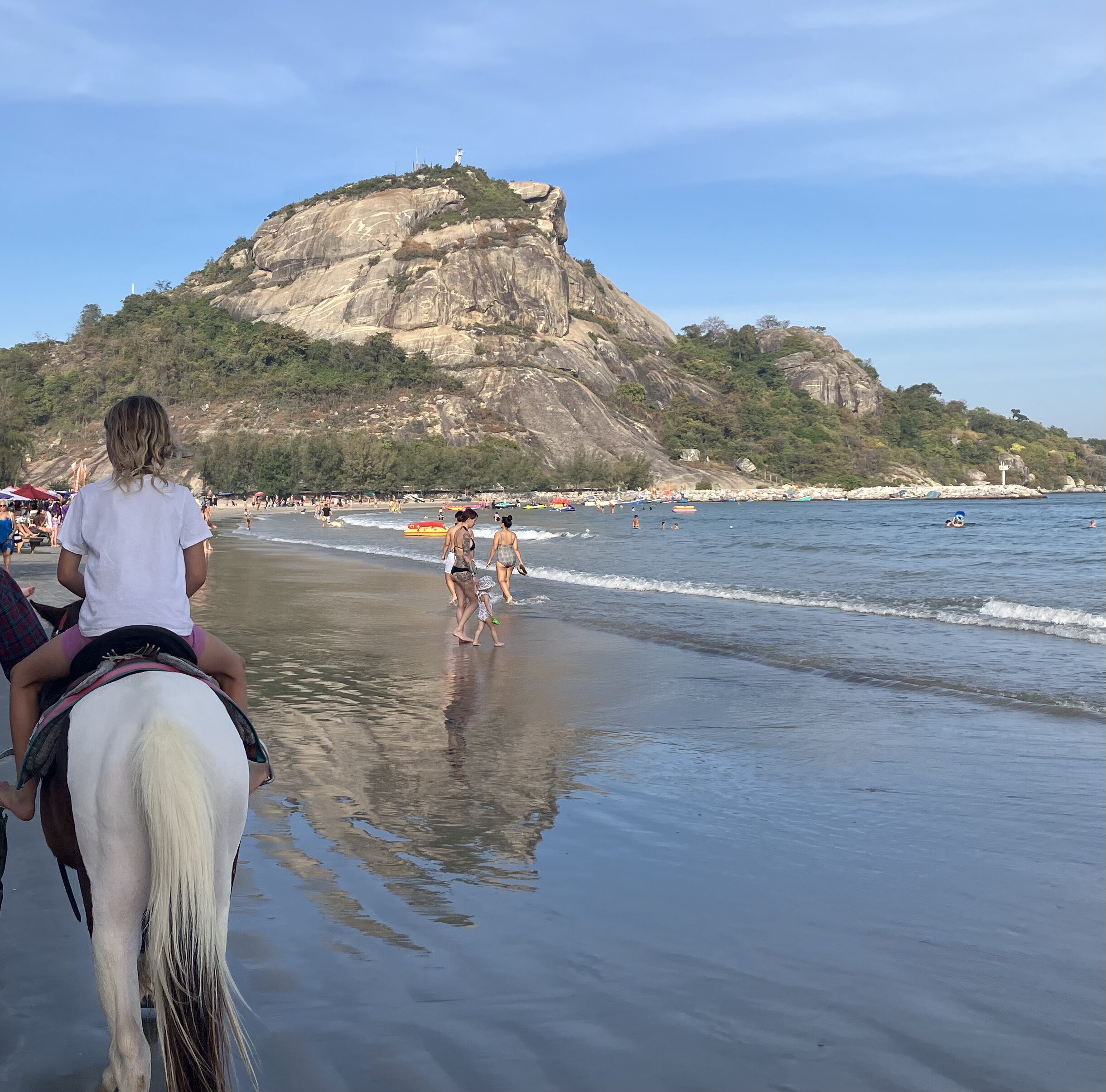 Thai people adore kids. The crab and horse, with their blond hair, despite the questionable walking styles, get a lot of attention.